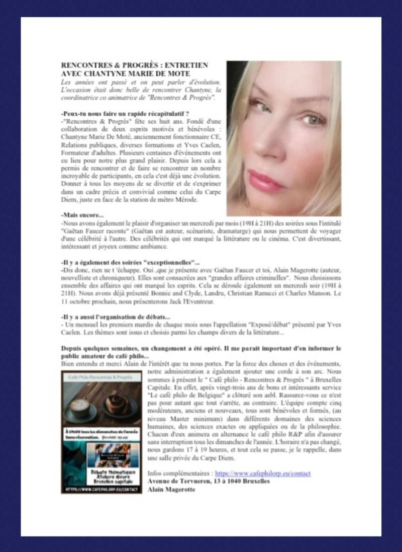 Fondatrice/ coordinatrice et rédactrice et du concept "Café philo Rencontres & Progrès Bruxelles capitale"